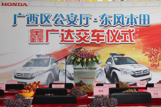 此次交車儀式上公安廳的負(fù)責(zé)人表示,東風(fēng)本田CR-V自2007年上市以來(lái),銷量一直居于SUV之冠,并深受公、檢、法、司系統(tǒng)的喜愛(ài),同時(shí)CR-V作為50萬(wàn)車主的見(jiàn)證,50萬(wàn)車主的口碑值得信賴。這批車交付使用后,也將使我們的警務(wù)工作更加方便順暢。伴隨著鮮花和掌聲,伴隨著東本博遠(yuǎn)店對(duì)廣西區(qū)公安廳的支持與祝福,在眾多媒體與各位領(lǐng)導(dǎo)的注視下,東本廠家領(lǐng)導(dǎo)陳總與廣西區(qū)公安廳代表在臺(tái)上舉行了隆重的交接鑰匙儀式。首批22臺(tái)車公務(wù)車即日起將投入公安工作一線,承擔(dān)起日常的執(zhí)勤重任。