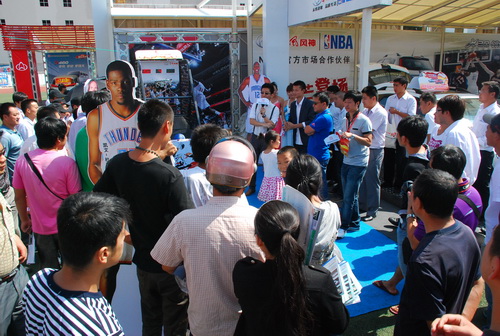 在西部巡展內(nèi)蒙古自治區(qū)赤峰站巡展現(xiàn)場(chǎng),“品質(zhì)風(fēng)神 激情共享-東風(fēng)風(fēng)神邀您共賞NBA”主題活動(dòng)如期舉行。該活動(dòng)吸引了大批現(xiàn)場(chǎng)觀眾,籃球愛(ài)好者們踴躍報(bào)名參與。與NBA明星比身高,障礙運(yùn)球,終極投籃等活動(dòng)讓觀眾玩在其中,快樂(lè)無(wú)比。為配合西部巡展,東風(fēng)風(fēng)神赤峰海森專營(yíng)店還在巡展現(xiàn)場(chǎng)重磅推出了“投進(jìn)一球,購(gòu)車減一百”的促銷活動(dòng),即現(xiàn)場(chǎng)每位購(gòu)車意向客戶有五次投籃機(jī)會(huì),每投中一球購(gòu)車便可減100元現(xiàn)金。這一活動(dòng)的推出讓現(xiàn)場(chǎng)猶豫不決的潛在客戶果斷出手。他們紛紛一試身手,誓用手中的籃球?yàn)樽约黑A得實(shí)惠。
