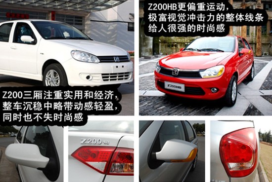 Z200的定位是三廂經(jīng)濟型家庭用車,注重實用和經(jīng)濟。因此,其外觀更有自然大氣之風。給人的感覺是:整車沉穩(wěn)中略帶動感輕盈,也不失其時尚小車所特有的個性和前衛(wèi)的時尚感。而Z200HB的定位則是運動型時尚兩廂車,注重運動和操控。因此,從外觀上,其運動型轎車的基因十分突出。無論是動感銳利的前臉,還是極富視覺沖擊力的整體線條都給人很強的時尚感。加上流線型的前后包圍和側(cè)裙,更有效地增加了汽車空氣下壓力,進一步降低了整車的風阻系數(shù),為其動力性能加分不少。