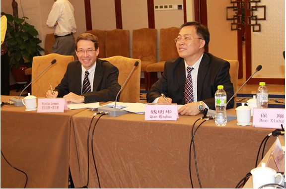 圖二:國家工信部錢明華先生、法國經(jīng)濟(jì)工業(yè)和就業(yè)部雷爾曼先生