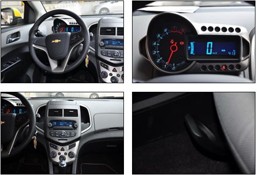 愛唯歐別出心裁的推出了機車儀表風格,和進口的斯帕可SPARK完全類似,左側(cè)的圓盤為轉(zhuǎn)速表,右側(cè)的藍色液晶顯示屏可現(xiàn)實車速、里程以及像平均油耗、燃油續(xù)航里程等這些基本的行車電腦信息。方向盤和科魯茲也是一致的。中控空調(diào)出風口兩側(cè)的儲物格和上下分層的手套箱都讓愛唯歐人性化設(shè)計更為出色。配置方面,愛唯歐并沒有電動天窗和真皮座椅,但具有前排側(cè)氣囊、多功能方向盤、安吉星定位互動系統(tǒng)。作為小車來說,還是擁有自身的特色。