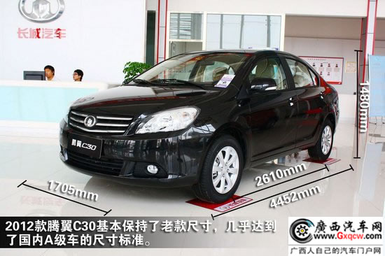 在車身尺寸與外觀方面,2012款騰翼C30基本保持了老款的設(shè)計特點,長寬高分別達到4452/1705/1480毫米,軸距也達到了2610毫米,幾乎達到了國內(nèi)A級車的尺寸標(biāo)準(zhǔn)。另外,騰翼C30的離地間隙達到155毫米,可以適應(yīng)國內(nèi)復(fù)雜路面情況。外觀方面的最大變化則來自于前臉部分的造型上,新款車型將進氣格柵由原來的“四道杠”改成了“三道杠”。 這是因為長城需要對品牌設(shè)計元素進行統(tǒng)一。
