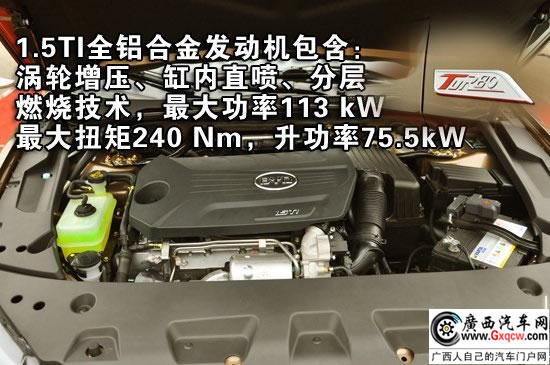 比亞迪的這款1.5L小排量全鋁發(fā)動機(jī),包含缸內(nèi)直噴及分層燃燒當(dāng)今發(fā)動機(jī)領(lǐng)域最前端的技術(shù),是比亞迪G6的重要宣傳點(diǎn)。其最大功率、扭矩分別為113kw/5500rpm、240Nm /1750~3500rpm,升功率75.5KWL。動力數(shù)值達(dá)到自然吸氣發(fā)動機(jī)2.0L的水平,然而排放標(biāo)準(zhǔn)卻保持小排量發(fā)動機(jī)的優(yōu)勢,讓人眼前一亮。