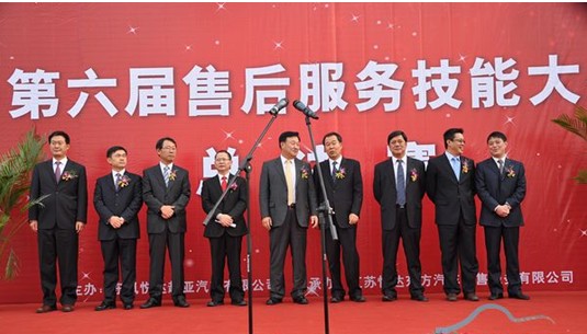 上午9時(shí),開幕儀式在主持人的感謝聲中正式開始了。東風(fēng)悅達(dá)起亞汽車有限公司總經(jīng)理蘇南永先生與東風(fēng)悅達(dá)起亞鹽城悅達(dá)東方專營(yíng)店總經(jīng)理李大明先生先后上臺(tái)致辭,他們?cè)陉U述售后服務(wù)技能大賽對(duì)于企業(yè)重要意義的同時(shí),也深情鼓勵(lì)參賽選手,希望他們能展示風(fēng)采、賽出水平、賽出風(fēng)格,并在彼此的切磋競(jìng)技中得到全面的提高。