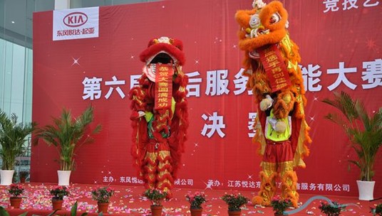 最后,由東風(fēng)悅達(dá)起亞汽車有限公司總經(jīng)理蘇南永先生與東風(fēng)悅達(dá)起亞鹽城悅達(dá)東方專營(yíng)店董事長(zhǎng)崔林先生為舞獅點(diǎn)睛,象征著東風(fēng)悅達(dá)起亞吉祥平安、紅紅火火,同時(shí)也標(biāo)志著東風(fēng)悅達(dá)起亞第六屆售后服務(wù)技能大賽總決賽開幕式圓滿落幕,以及為期3天的總決賽的戰(zhàn)火正式點(diǎn)燃。