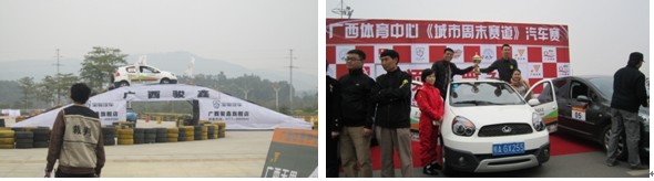 南寧開天隊攜旗下全球鷹、力帆320兩款未經(jīng)任何改裝的試乘試駕車于12月17日、18日在廣西體育中心主辦的城市周末賽中力挫群雄勇奪桂冠。17、18日廣西體育中心前廣場發(fā)動機轟鳴、賽車穿梭,“城市周末賽道”汽車賽第一場月度賽拉開戰(zhàn)幕。18日決賽,比賽進入白熱化競爭階段,南寧開天隊一路過關(guān)斬將,成功的超越了,別克、標(biāo)志、等車隊,最后冠軍爭奪就在南寧開天車隊和中達寶馬車隊之間進行。經(jīng)過激烈比拼,開天隊還是憑借車手穩(wěn)健的車輛操控技術(shù),以及力帆320、全球鷹GX2、、過硬的產(chǎn)品質(zhì)量拿到寶貴積分,加上其他隊友穩(wěn)定發(fā)揮,最后拿到經(jīng)銷商組團隊賽冠軍,成功擊敗了寶馬MINI、標(biāo)志307等合資進口品牌,再度彰顯了它們與生俱來的運動基因和力帆320馳騁在2011年汽車短道拉力賽的王者地位,同時也使全球鷹GX2小車顛覆者的稱號名至實歸。