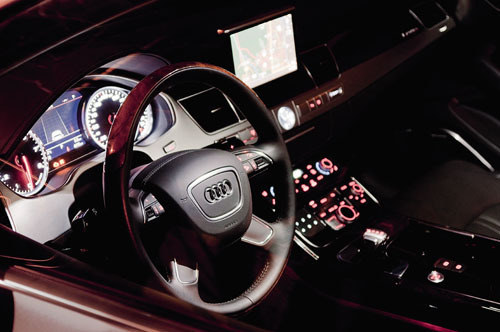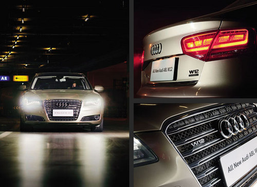 “我雖然沒有奔馳S級(jí)轎車那樣剛勁,極具張力,霸氣十足,但還保留著古典韻味的外表,可我有我的特色,沉穩(wěn)大氣,源于自信的低調(diào),還有全新的更唯美時(shí)尚的外表”。說著他開始展示起來,“我,全新奧迪A8LW12,作為旗艦擁有全新的頭部妝容。水平排列的鍍鉻飾條采用雙輻設(shè)計(jì),其間點(diǎn)綴著熠熠生輝的W12徽標(biāo)。鍍鉻飾條后襯帶精致紋理金屬絲編織而成的網(wǎng)格狀裝飾,使我顯得尊貴威嚴(yán)!蔽蚁蛩c(diǎn)點(diǎn)頭,對他說“我更喜歡你的尾部,有最新的家族特征,而且更時(shí)尚了,還比以前的你更年輕”。他顯然很滿意,接著說,“我還獨(dú)有全LED前燈,每側(cè)使用76個(gè)LED光源,兩側(cè)大燈總能耗僅為80瓦,比已經(jīng)十分高效的加強(qiáng)版氙燈還要低,并且以最貼近日光的色調(diào)進(jìn)行照明,為駕駛者營造最佳的夜間駕駛視野,而在白天日間行車燈又讓我相當(dāng)奪目。”