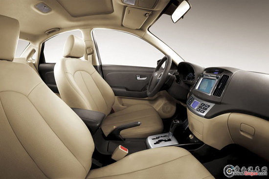悅動的內(nèi)飾為上深下淺的配色,黑色減少反光,米色顯得溫馨。點綴在方向盤和中控臺上的銀色飾板,細節(jié)上的小小改動,如中控臺上旋鈕的邊緣都增加了鍍鉻的裝飾等,提升了整體的質(zhì)感,顯得很有檔次。