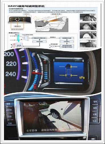 在電子智能配置搭載方面,G6也延續(xù)了比亞迪“多、全、新”的特點(diǎn)。論其電子配置,其中尤以BAWS疲勞駕駛預(yù)警系統(tǒng)及TPMS胎壓監(jiān)測(cè)系統(tǒng)、右前輪盲區(qū)顯示三大電子智能裝備最為亮眼。