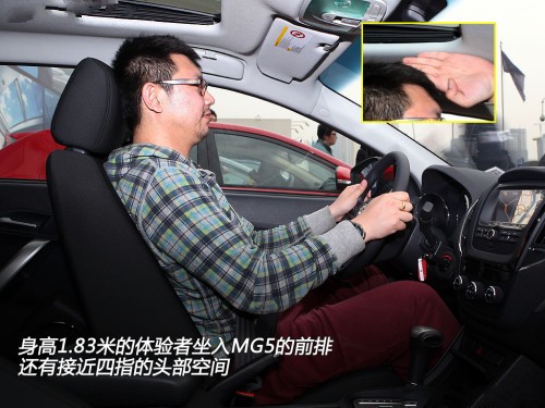 身高1.83米的體驗者坐入MG5的前排,在調(diào)整好正確駕駛坐姿后,還有接近四指的頭部空間;進入后排,頭部同樣有接近四指的空間,腿部有大約兩拳的余量,雖然與善于營造車內(nèi)空間的騏達相比還有一些差距,不過就整體表現(xiàn)而言,MG5的內(nèi)部乘用空間應(yīng)付日常使用綽綽有余。