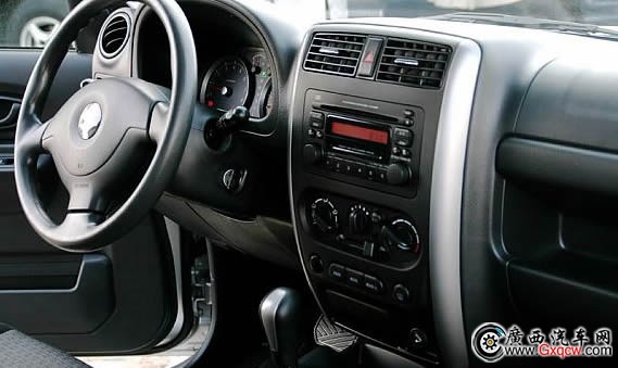 進入車內,吉姆尼的內飾復古風格十分濃郁,三幅式方向盤很皮實,手感也不錯,儀表盤中規(guī)中矩,中控設計“人性化十足”,操作手感不太好,也許這就是品味復 古風需要付出的代價吧。在用料方面,廠家似乎也不愿意太下功夫,大量的硬塑料材質讓內飾質感單薄生硬,好在進口車做工方面不錯,接縫也比較均勻。