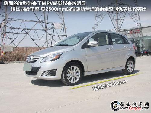 就像文中開篇提到過的,這款車型的外觀造型,當(dāng)我們第一眼看到他時(shí), 很容易就和奔馳B級(jí)聯(lián)系到一起,從其車身尺寸來講,其比奔馳B級(jí)小了一圈,它的車身尺寸分別為長(zhǎng)3998mm、寬1720mm、高1503mm,軸距為2500mm 。別的優(yōu)勢(shì)咱們暫且不看,出于5-8萬元的市場(chǎng)售價(jià),其時(shí)尚的外形帶來了較強(qiáng)的市場(chǎng)競(jìng)爭(zhēng)力。
