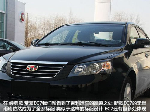 在經(jīng)典款帝豪EC7身上我們就看到了吉利造車的厚道之處,新款EC7的無骨雨刷依然成為了全系標(biāo)配,消費(fèi)者能看得到和不能看得到的地方,縱觀配置表(大燈感應(yīng)自動控制系統(tǒng)、大燈高度自動調(diào)節(jié)、前后風(fēng)擋隔熱綠色玻璃、外后視鏡電動調(diào)節(jié)及電加熱 、中央扶手儲物盒、后排座椅按比例放倒、全自動恒溫空調(diào)等等),類似于這樣的設(shè)計(jì),帝豪EC7還有很多很多,這也體現(xiàn)了廠家造車的用心之處。