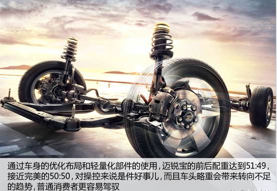 邁銳寶作為一款前驅(qū)車,能將前后重量比做到51:49的比例也并非輕而易舉,該車的發(fā)動機蓋、懸掛擺臂以及前后防撞梁等部件采用鋁制材料來降低車重和優(yōu)化重量比,有利于增強彎道性能和制動分配效果。