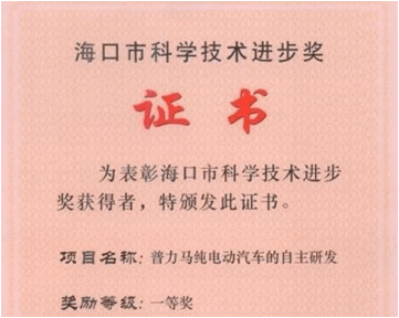 近日,?谑腥嗣裾k公廳公布了2011年度?谑锌茖W(xué)技術(shù)獎(jiǎng)勵(lì)評(píng)審結(jié)果,海馬汽車《普力馬純電動(dòng)汽車的自主研發(fā)》項(xiàng)目榮獲?谑锌萍歼M(jìn)步一等獎(jiǎng),展現(xiàn)了海馬汽車自主創(chuàng)新領(lǐng)域所取得的新成就。