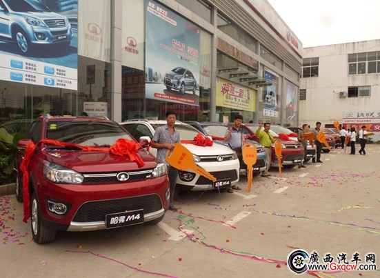 2012年6月3日上午11點(diǎn),廣西弘泰長城汽車金源店喜氣盈門,賓客滿堂,20多位長城哈弗M4的車主出席了盛大的“哈弗M4廣西區(qū)域首批客戶集體交車儀式”。到場的客戶不僅可以參與精彩的有獎問答和現(xiàn)場大抽獎,還可以現(xiàn)場訂提哈弗M4現(xiàn)車,在如此濃烈的購車氛圍下,不少客戶已經(jīng)對長城哈弗M4刮目相看。硬派迷你SUV哈弗M4自4月底樣車到店以來,預(yù)訂形勢持續(xù)火爆。