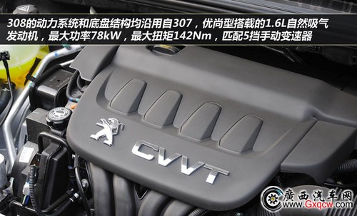 308的動(dòng)力系統(tǒng)和底盤結(jié)構(gòu)均沿用自307,優(yōu)尚型搭載的1.6L自然吸氣發(fā)動(dòng)機(jī),最大功率78kW,最大扭矩142Nm,匹配5擋手動(dòng)變速器。雖然都進(jìn)行了適應(yīng)性的調(diào)整,這對于追求先進(jìn)技術(shù)的用戶顯得誠意不夠,但好處是性能穩(wěn)定,保養(yǎng)維修方便,并且其在307車型上的表現(xiàn)也完全滿足家用需求,底盤的設(shè)定也是兼顧舒適與操控。