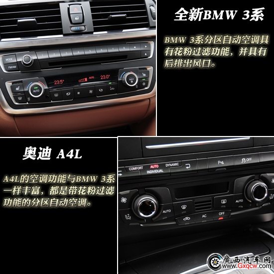 在舒適性配置方面,BMW 3系采用了非全尺寸的電動天窗,而它的分區(qū)自動空調(diào)具有花粉過濾功能,并具有后排出風(fēng)口。而奧迪A4L的空調(diào)功能與BMW 3系一樣豐富,都是帶花粉過濾功能的分區(qū)自動空調(diào)。
