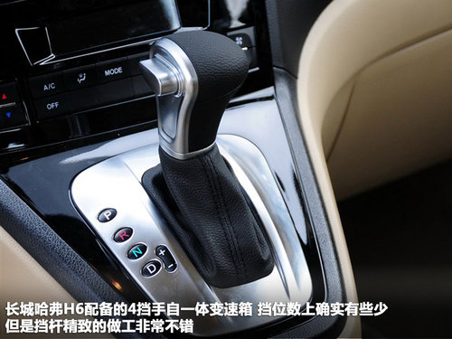 哈弗H6將有汽、柴油兩種動力,汽油方面,哈弗H6將搭載三菱2.0L 4G63發(fā)動機;柴油方面,哈弗H6搭載的是綠靜2.0T柴油發(fā)動機,實拍車型為2.0L汽油版,最大功率98kw。H6配置的4擋手自一體變速箱,檔位數(shù)上確實有些少,但是檔桿精致的做工還是非常不錯的。