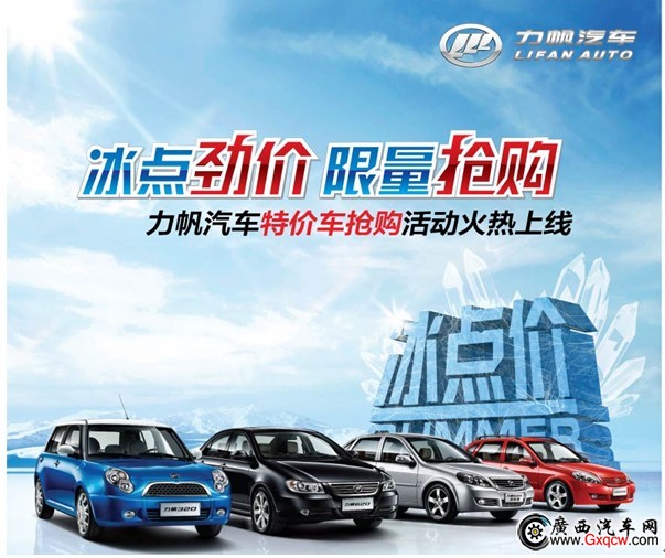 盛夏酷熱難行,何不坐擁尊駕,清涼舒爽抵擋烈日!2012年7月28日,南寧開(kāi)天力帆4S店特推部分“一步到位價(jià)”車(chē)型將以力帆620最低價(jià)46900元起的冰點(diǎn)勁價(jià),以及其它車(chē)型參與限量銷(xiāo)售,讓你免去砍價(jià)的煩惱,購(gòu)車(chē)一步到位!搶購(gòu)風(fēng)暴一觸即發(fā),急速行動(dòng)!抱團(tuán)火熱集結(jié)中……