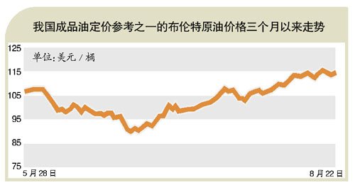 以當(dāng)前原油價格及匯率滾動預(yù)測,對應(yīng)90#汽油上調(diào)0.39元/升,0#柴油上調(diào)0.46元/升。以昨日價格估測,除非原油大跌9美元/桶以上,并持續(xù)運(yùn)行,即未來13個工作日原油平均跌幅超過9美元,才有可能將三地變化率重新拉回4%以內(nèi),因此,9月成品油零售價再次調(diào)漲的可能性非常大。但以目前原油小幅度振蕩走勢來看,成品油9月份上調(diào)窗口打開基本成定局。
