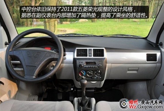 五菱榮光采用轎車一體化的中控臺設計風格,上深下淺的顏色搭配,中間配以銀灰色烤漆面板裝飾,為車廂增營造了溫馨氛圍。三輻式的方向盤在視覺效果上給人一種很強的力量感,手握上去感覺很扎實、厚重, 大大改善了用戶的駕駛感受,讓司機擁有更輕松的駕車心態(tài)。儀表盤的設計非常簡潔,黑底白字的表盤設計讀取數(shù)值很方便。簡潔的儀表盤中間設計了一塊橘色背光的顯示屏,其中油量表、水溫表和時鐘都通過它來顯示,較傳統(tǒng)的指針表更具科技感。