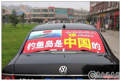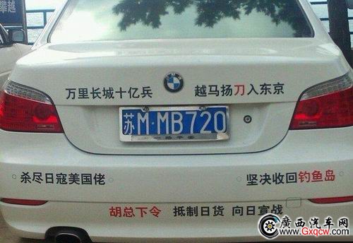 連日來(lái),各地群眾通過(guò)了各種方式表達(dá)了保衛(wèi)釣魚(yú)島的決心,在網(wǎng)上,愛(ài)國(guó)標(biāo)語(yǔ)式的車貼賣得非常火。但是交警提醒,車主在不影響駕駛安全的情況下貼個(gè)性車貼是可以的,但是如果車貼遮擋了車輛品牌標(biāo)志,就是涉嫌改裝的違法行為。