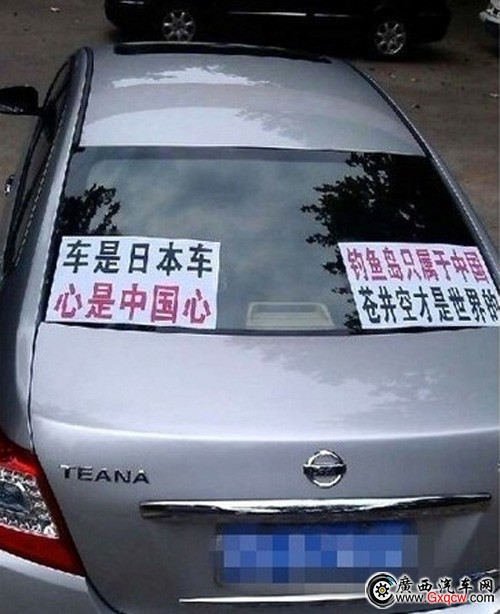 很多店主表示,每天來(lái)買愛(ài)國(guó)車貼的車主中,日系車主占了顧客總數(shù)的六成多。一位網(wǎng)友在微博上發(fā)帖,將自己所開(kāi)的日系品牌汽車的車標(biāo)貼上了中國(guó)國(guó)旗車貼,當(dāng)即一位交警的微博就跟帖指出,這樣做是違法行為。