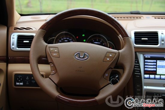 試駕的高配車(chē)型采用的木質(zhì)與真皮包裹方向盤(pán)給人提供了不錯(cuò)的質(zhì)感,尺寸在SUV車(chē)型中中規(guī)中矩,多功能按鍵提供了定速巡航調(diào)節(jié)等功能,操作較為順手。儀表盤(pán)設(shè)計(jì)偏向于實(shí)用,讀取清晰,中央液晶屏可以顯示油耗等行車(chē)信息。