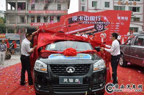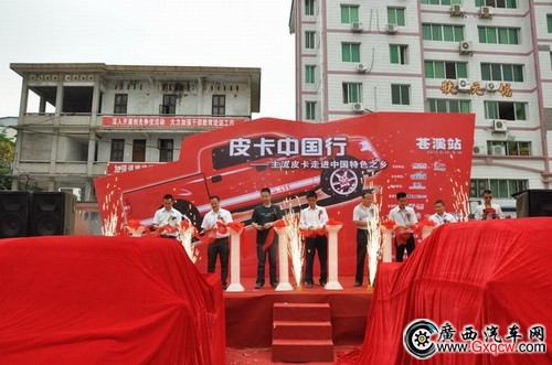 “2012皮卡中國行——主流皮卡走進中國特色之鄉(xiāng)”蒼溪站活動,于9月15日在蒼溪電影院停車場正是拉開帷幕,此次活動有來自江淮、江鈴、海格、長城、黃海、福田六大中國主流皮卡品牌的15款車亮相蒼溪,給當(dāng)?shù)厥忻穹钌狭艘粓鼍澜^倫的皮卡文化盛宴。
