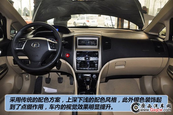 C50的內飾整體觀感是不錯的,和諧中庸同時不乏一些時尚。分層式儀表借鑒了某款成熟合資車型的造型,上層以數(shù)字顯示速度,下層是水溫、轉速以及油量信息。