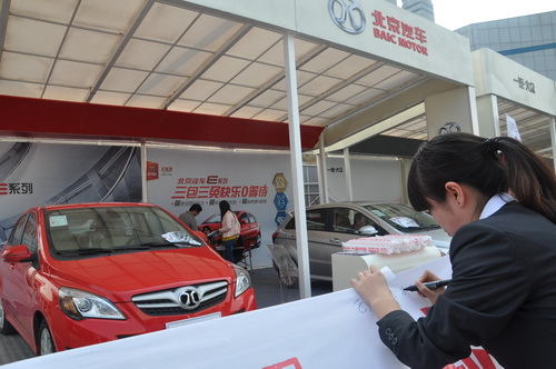 北京汽車可并不是來做客的。他們是西部名城汽車巡展渭南站的主角,在兩天的時間里,他們積極參與組委會組織的各種活動,在開幕式之前就參加了組委會組織的經(jīng)銷商承諾“誠信經(jīng)營 優(yōu)質服務 廠價優(yōu)惠 年內(nèi)最低”的簽名活動,在橫幅上鄭重地簽上了自己的名字;在車型推介及有獎問答環(huán)節(jié),他們更是積極宣傳推廣自己的品牌,給渭南市民留下了深刻的印象。