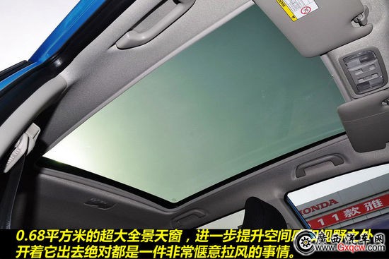 要想欣賞美麗的自然肯定比普通天窗版本更有力,同時(shí)我們也注意到,因?yàn)轱w度車身高度達(dá)到了1525mm,加上類似MPV的輪廓,所以一般人都不會(huì)感覺這塊“玻璃”會(huì)給前后乘客帶來頭部壓力。