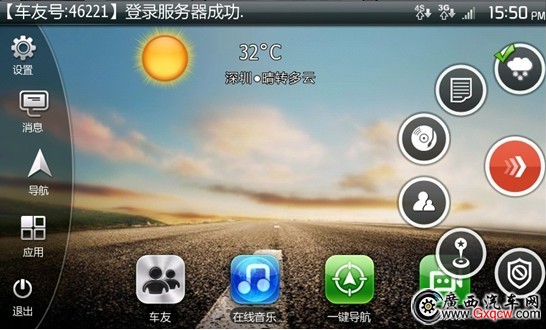 廣匯云服務是市場上首款成熟的3G智能行車系統(tǒng),不僅能提供市場上普通導航一體機所擁有的找路、收音機、CMMB、DVD等功能,還從生活、社交、行車、娛樂四個方面入手,實現車載導航、手機、電腦相互聯動的“云服務”。內容包含一鍵導航、在線音樂、防盜輔助、在線新聞、車友聯動、保養(yǎng)預約等實用方便的服務。