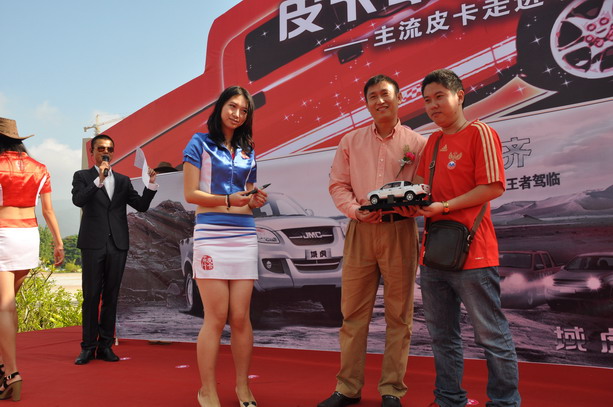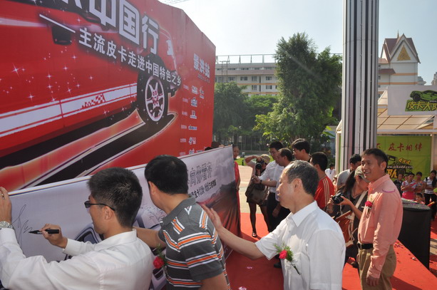 11月3日-4日,2012皮卡中國(guó)行景洪站活動(dòng)在潑水廣場(chǎng)隆重舉行。這是今年皮卡中國(guó)行的最后一站,無論是現(xiàn)場(chǎng)人氣、現(xiàn)場(chǎng)活動(dòng)還是現(xiàn)場(chǎng)銷量,都為今年的皮卡中國(guó)行畫上了完美的句號(hào)。江鈴域虎四驅(qū)上市發(fā)布會(huì),在本站活動(dòng)開幕式后隆重舉行。