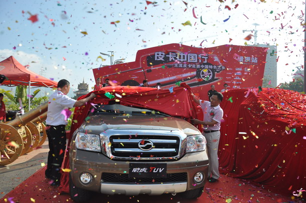 “皮卡中國行——主流皮卡走進中國特色之鄉(xiāng)”活動已經(jīng)走過了16個城市,在經(jīng)歷的十六個城市中,皮卡中國行活動獲得了不計其數(shù)的經(jīng)銷商稱贊,也得到了各地皮卡消費者對于皮卡中國行活動的認可。11月3號,2012第一屆皮卡中國行活動的收官之戰(zhàn)景洪站活動打響,這一天,寬闊的潑水廣場上人山人海、載歌載舞,成了歡樂的海洋。