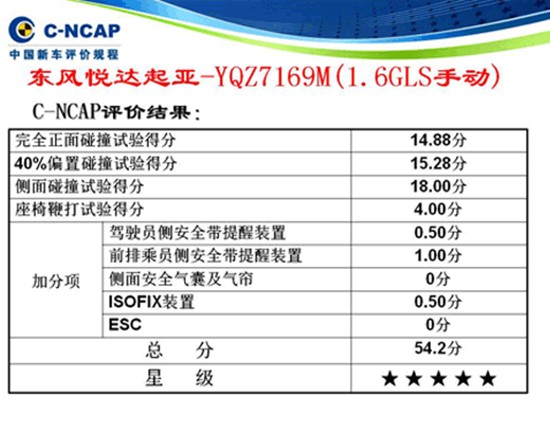 C-NCAP中國汽車技術(shù)研究中心是中國汽車碰撞的綜合性汽車科研機構(gòu),具有國內(nèi)最為全面的汽車碰撞試驗專業(yè)技術(shù)和經(jīng)驗,獲得國際同行的認(rèn)可與肯定。據(jù)悉,2013年開始,C-NCAP安全碰撞測試標(biāo)準(zhǔn)全面升級,新版管理規(guī)則在“評分體系”、“碰撞速度”和“試驗測試項目”等方面都有較大調(diào)整。不僅把后排乘客傷害納入評分體系,還增加衡量追尾事故對人體傷害的鞭打測試,實現(xiàn)與歐洲評價標(biāo)準(zhǔn)的進一步靠攏,達到五星安全的難度也再度升高。在本次測試中,K3按規(guī)定進行了正面100%重疊剛性壁障碰撞試驗、正面40%重疊可變形壁障碰撞、可變形移動壁障側(cè)面碰撞以及座椅鞭打試驗4項試驗,得分分別為14.88、15.28、18(該項滿分)及4(該項滿分);而在加分項中,也憑駕駛員側(cè)安全帶提醒裝置、前排乘員側(cè)安全帶提醒裝置和ISOFIX裝置獲得2分加分。最終K3以54.2的優(yōu)異表現(xiàn),榮膺五星安全,為駕乘者提供“五星”的安全護航。