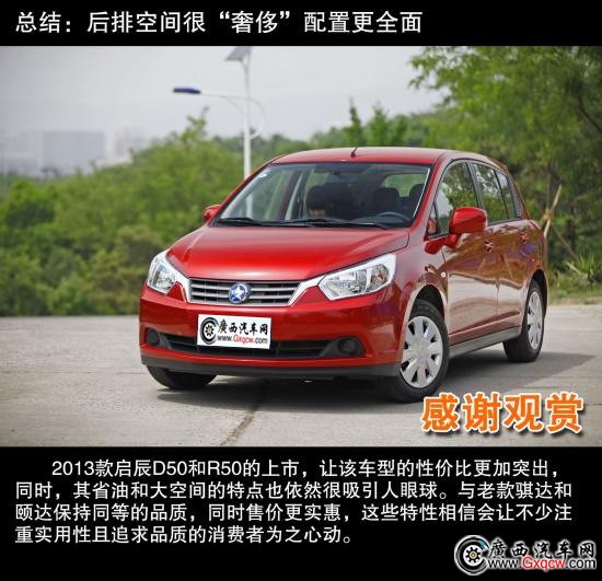 2013款啟辰D50和R50在外形、車身顏色、配置以及變速箱方面都有著一定程度的升級或改進(jìn)?梢哉f新款車型在性價比方面,以及燃油經(jīng)濟(jì)性方面都有所提升。