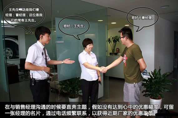 不同職務(wù)級別不同權(quán)限必然是亙古不變的道理。而砍車價也是如此,顧問-主管/經(jīng)理-店長/總經(jīng)理(具體每家店可能不一樣),每一個級別所能給出的底價是不同的,所以如果銷售有意賣您有意買,但是價格卻又僵持不下,不如讓銷售請示一下上級,價格一定會低一些。