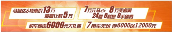 【驚喜2】馬自達(dá)6特惠價(jià)13萬起售,最高讓利5萬元,決戰(zhàn)B級(jí)價(jià)格巔峰;
