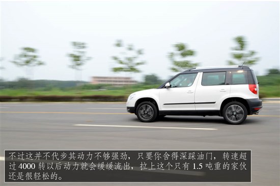 斯柯達(dá)Yeti所配備這套1.8TSI+6速DSG變速箱的動(dòng)力總成,在實(shí)際駕駛中的表現(xiàn)并沒有其它渦輪增壓發(fā)動(dòng)機(jī)所帶來(lái)的那種迅猛的動(dòng)力感覺,而表現(xiàn)得很平緩。整個(gè)駕駛從初段到中段都很平緩,感覺就像開著一輛自然吸氣發(fā)動(dòng)機(jī)的車型一樣。