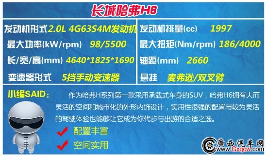 推薦車型:哈弗H6(2.4L自動(dòng))