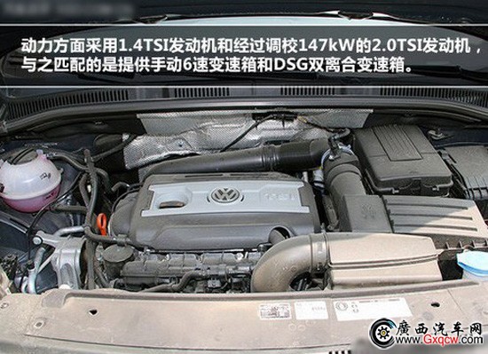 動力方面采用1.4TSI發(fā)動機和經(jīng)過調(diào)校147kW的2.0TSI發(fā)動機,與之匹配的是提供手動6速變速箱和DSG雙離合變速箱。