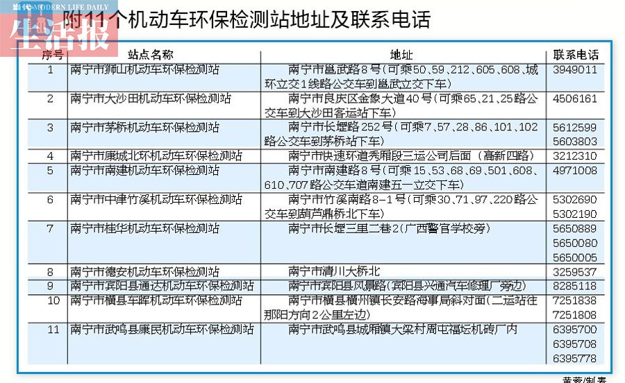 市民在辦理汽車環(huán)保檢驗(yàn)時(shí),遇到相關(guān)問題,可撥打南寧市環(huán)境保護(hù)局在用汽車環(huán)保檢驗(yàn)咨詢及投訴電話:0771-2620595、2623351。