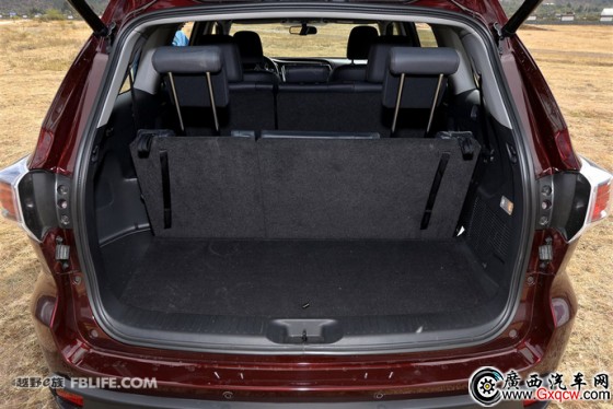 而后備箱空間非常靈活。在三排座椅均打開的情況下,后備箱縱向空間比較一般,但仍然有435mm的縱深;第三排座椅靠背放倒后,縱深為1075mm,已經(jīng)非常不錯(cuò),而且還能在車內(nèi)乘坐5位成員;而第二排座椅靠背放倒后,整個(gè)后備箱平面非常平整,最大縱深能夠達(dá)到驚人的2090mm,相當(dāng)于一張床的長(zhǎng)度了,空間非常可觀。