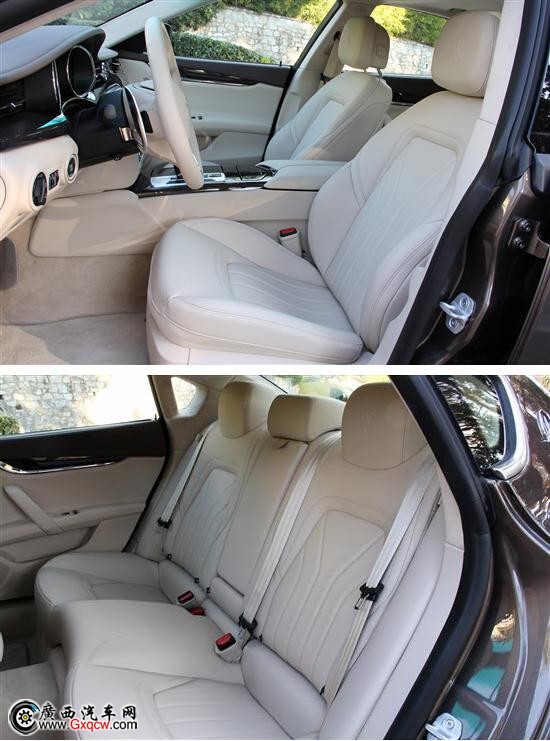 現(xiàn)在,你還能獲得更充裕的乘坐及儲(chǔ)物空間,當(dāng)然新總裁內(nèi)飾的觸感及材質(zhì)均優(yōu)于之前的任何一臺(tái)瑪莎拉蒂。V8車型使用的可調(diào)座椅表現(xiàn)非常優(yōu)秀,在快速過彎時(shí)能夠提供足夠的支撐力,長途行駛時(shí)也不會(huì)讓坐在上邊的你感到疲勞和不適。在車內(nèi)我們能夠聽到更明顯的發(fā)動(dòng)機(jī)排氣聲浪,但這并不是對(duì)車輛NVH工程所產(chǎn)生的抱怨。與對(duì)手相比,更富激情的排氣聲浪顯然比安靜但乏味乘員艙更討人喜歡。