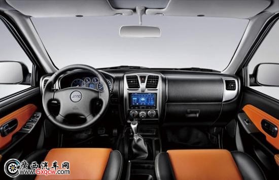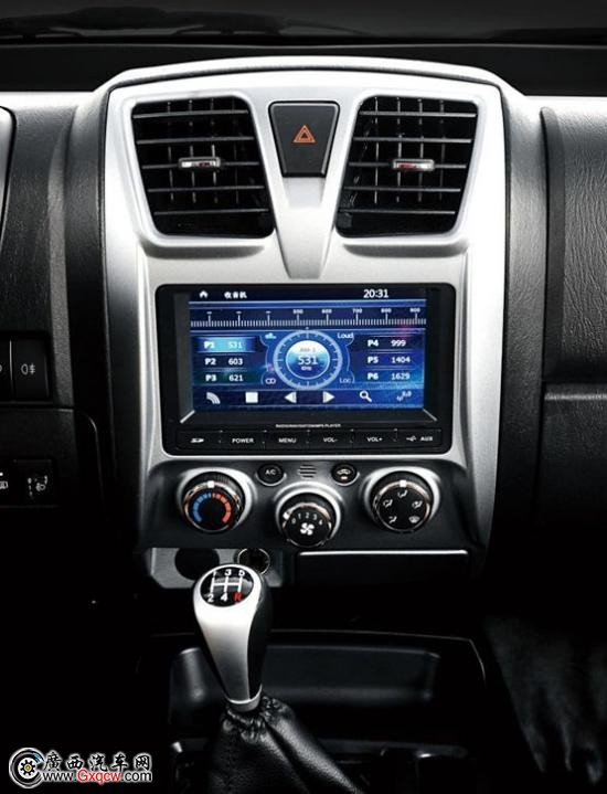 *大的改變是中控部分,空調出風口和空調調節(jié)旋鈕之間配備了具有MP5功能中控大屏幕,這對于江鈴皮卡來說已經是不小的改進。