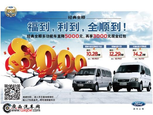近日,據(jù)小編走訪廣西江鈴了解到,11月到店購(gòu)江鈴全順多功能指定車系即可享受現(xiàn)金優(yōu)惠1500元,歡迎廣大朋友到店搶購(gòu)。咨詢熱線:0771-3119811.