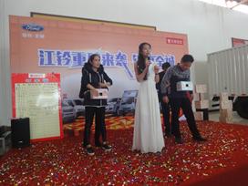 簽單會活動正式開始,廣西江鈴品牌經(jīng)理吳經(jīng)理致辭,并宣布此次活動促銷優(yōu)惠政策。