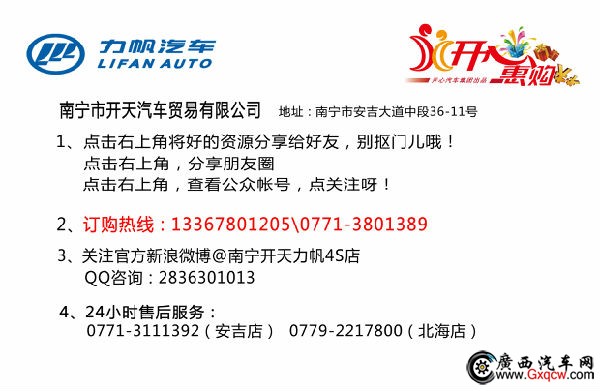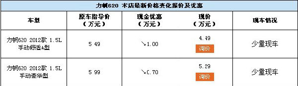 近日,開天力帆店內(nèi)力帆620現(xiàn)車銷售,顏色可選,目前購(gòu)車部分車型可優(yōu)惠1萬元,感興趣的朋友可以到店咨詢購(gòu)買,詳情見下表: